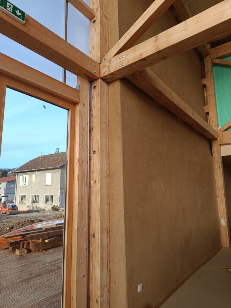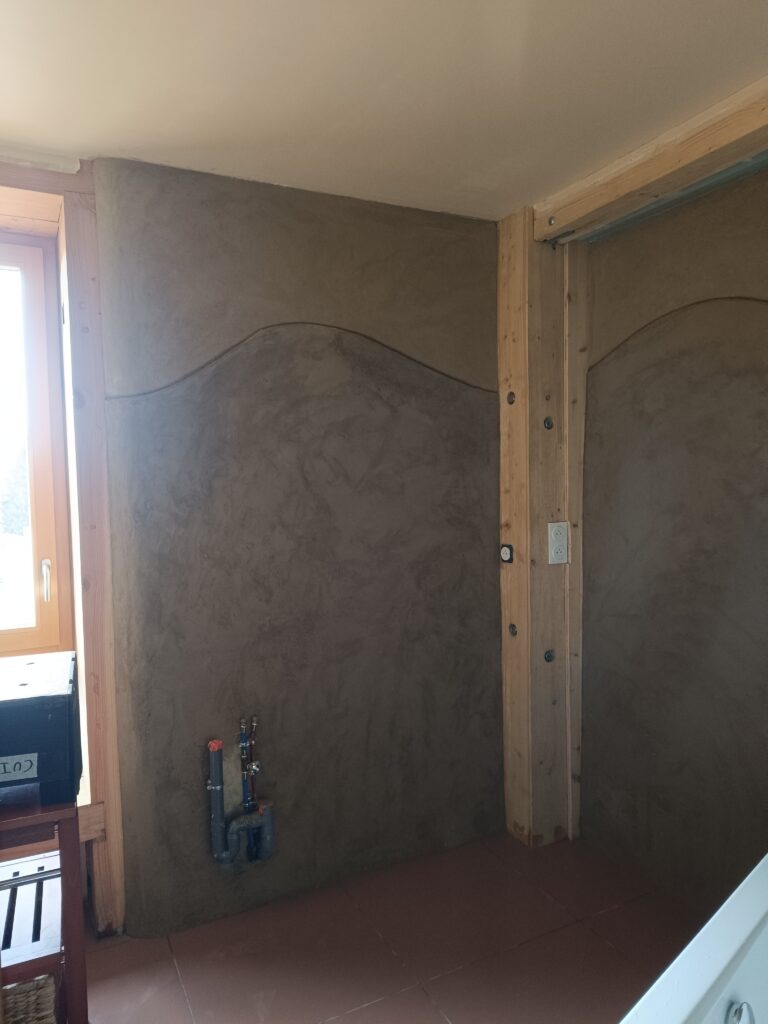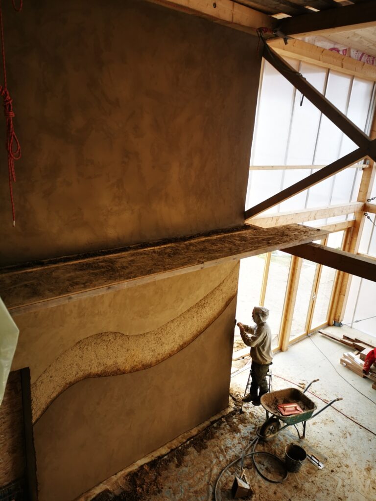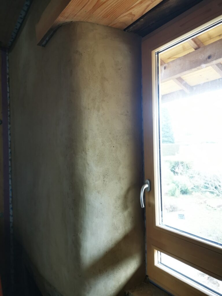 La partie renformis et corps d’enduits a été réalisée en terre paille par application manuelle.